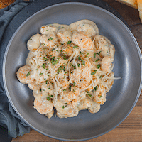 shrimp and lobster tossed with sweet potato gnocchi in our asiago cream sauce