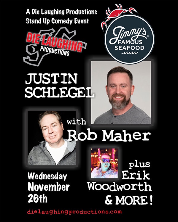 Join us for a night of food, fun, and non-stop laughter at the Thanksgiving Eve Comedy Bash, brought to you by Die Laughing Productions—hosted at the one and only Jimmy’s Famous Seafood, the restaurant we’re all most thankful for!