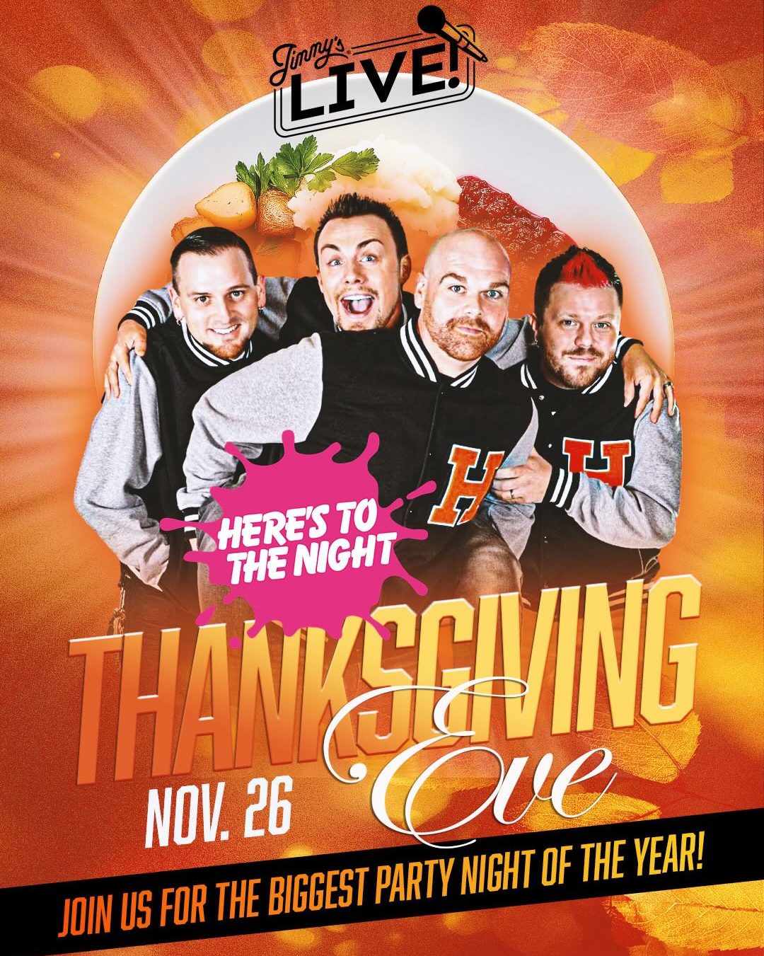 Don’t wait—this is the party everyone will be talking about! Secure your spot, bring your crew, and let’s make this Thanksgiving Eve LEGENDARY with Here’s To The Night at Jimmy’s!