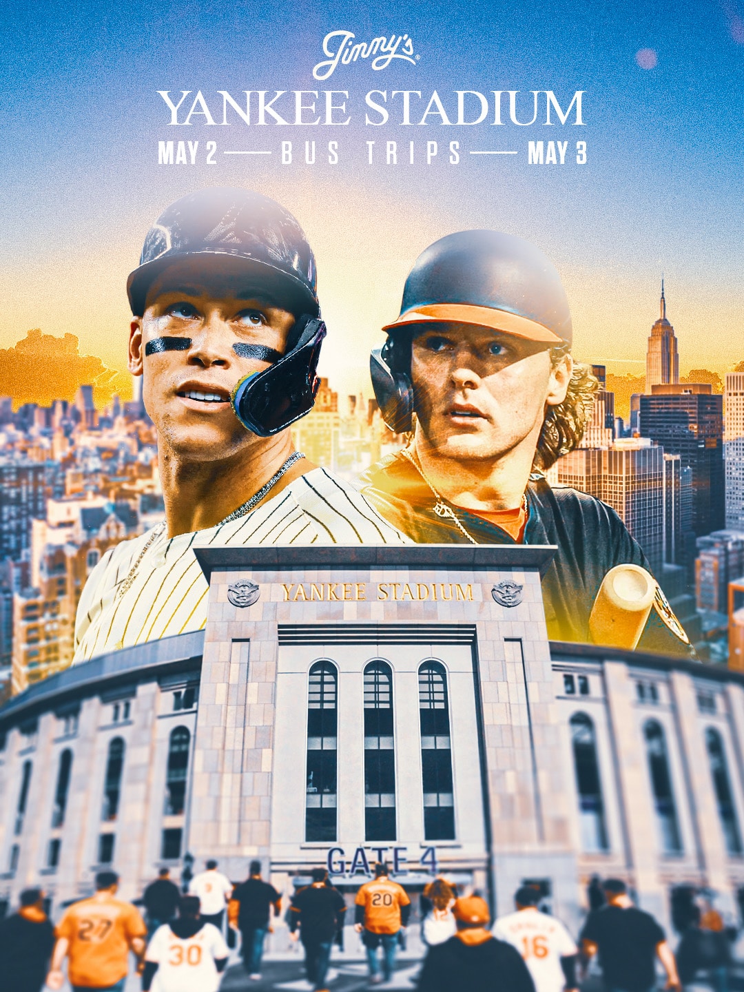 - Sunday, May 3rd — The second bus takes off for another 1:35 PM clash. This time, we’re united in Section 132—awesome outfield seats with a great angle on the warning track, the bullpens, and those monster home runs (hopefully all flying out in orange!). Perfect for soaking in the electric Bronx atmosphere while staying close to the game’s big moments.